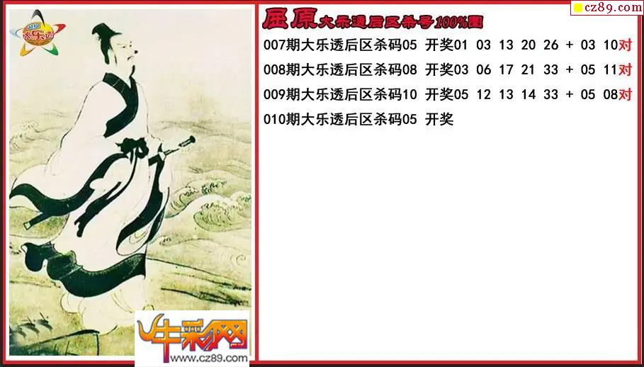 大乐透010期屈原后区杀号图