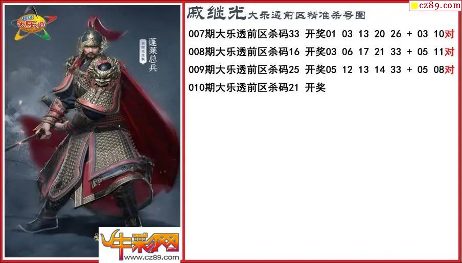 大乐透010期戚继光前区精准杀号图